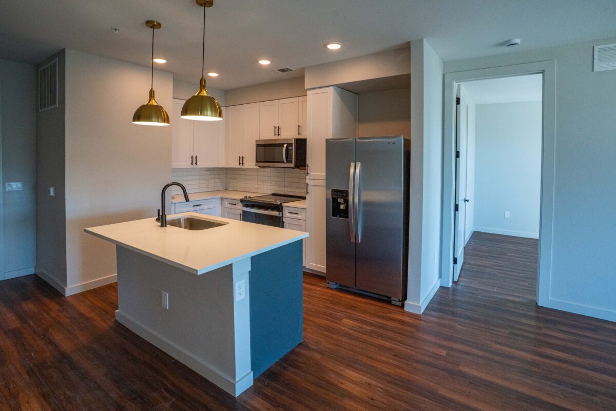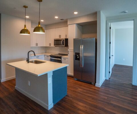Built on a 3-acre site, the North building has a total of 165 units with one- and two-bedroom configurations, and over 2,000-square-feet of retail space on the first floor. The South Building is built on a 4-acre site and has a total of 213 units with one-, two-, and three-bedroom configurations. The South Building has over 5,000-square-feet of retail space on the first floor.